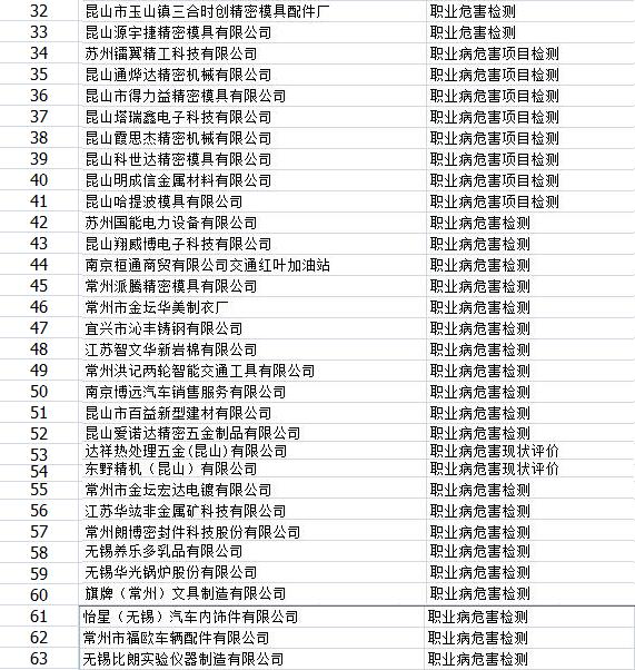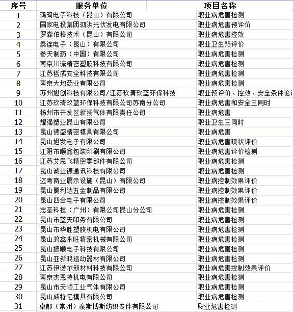 2019年度完成的部分職業(yè)衛(wèi)生報告項目清單